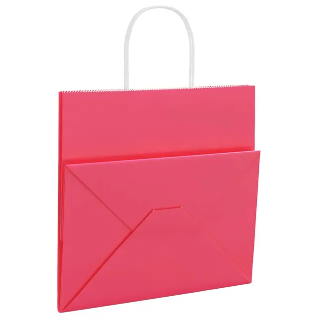 vidaXL Papirnate vrečke 250 kosov z ročaji roza 54x15x49 cm