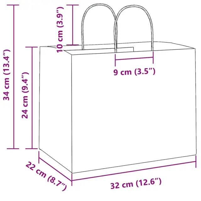 • Praktična zasnova ročaja: Papirnate vrečke imajo varno pritrjene ročaje iz papirnate vrvi, ki omogočajo enostavno prenašanje in prenašanje daril.