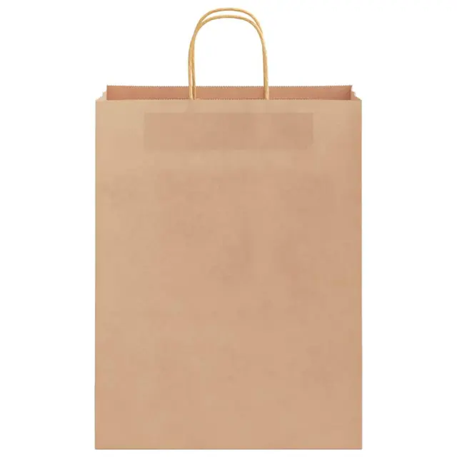 • Praktična zasnova ročaja: Papirnate vrečke imajo varno pritrjene ročaje iz papirnate vrvi, ki omogočajo enostavno prenašanje in prenašanje daril.