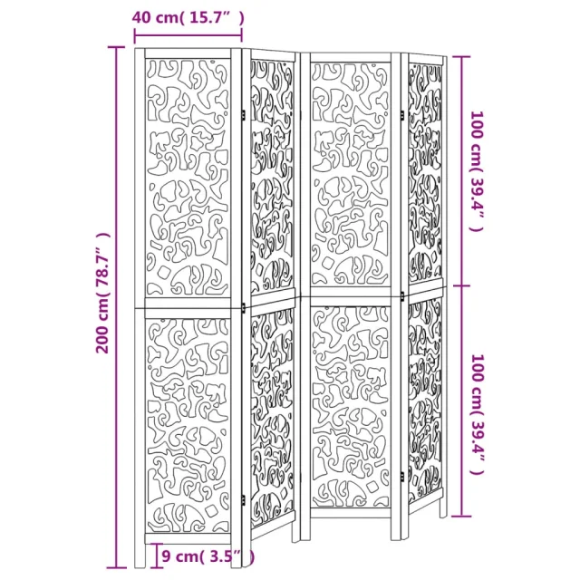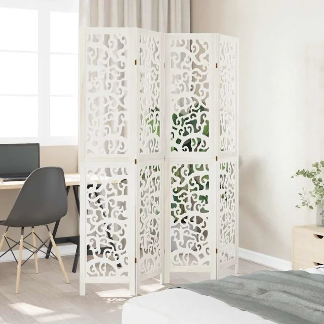 vidaXL Paravan 4-delni bel trden les pavlovnije