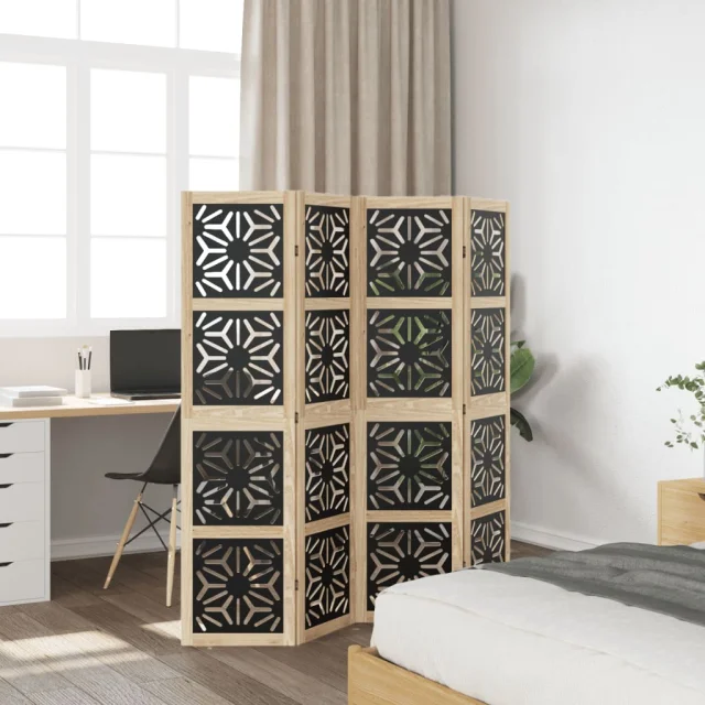 • Privlačen videz: Ta zložljiva predelna stena z geometrijskim izrezom daje prostoru značaj in dekorativen pridih.