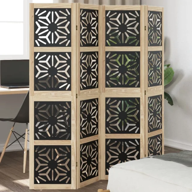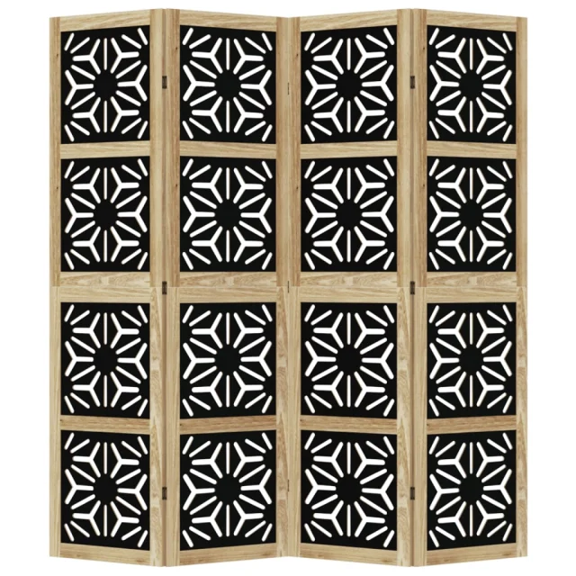 vidaXL Paravan 4-delni rjav in črn trden les pavlovnije