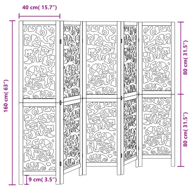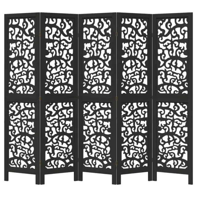 vidaXL Paravan 5-delni črn trden les pavlovnije