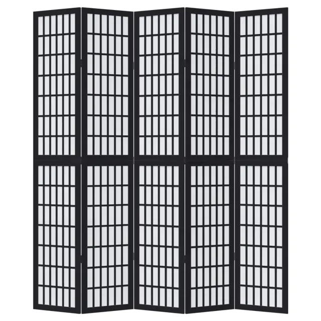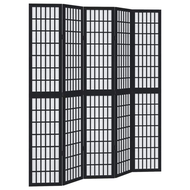 vidaXL Paravan 5-delni črn trden les pavlovnije