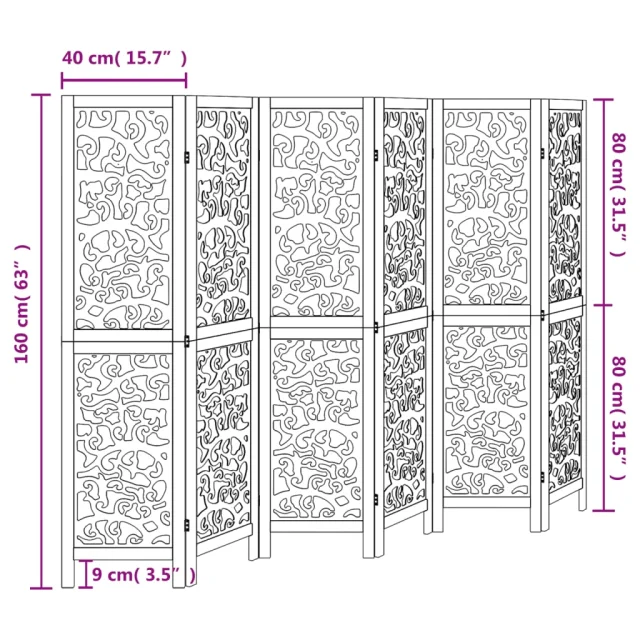 vidaXL Paravan 6-delni bel trden les pavlovnije