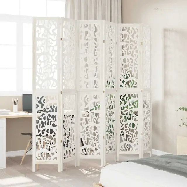 vidaXL Paravan 6-delni bel trden les pavlovnije