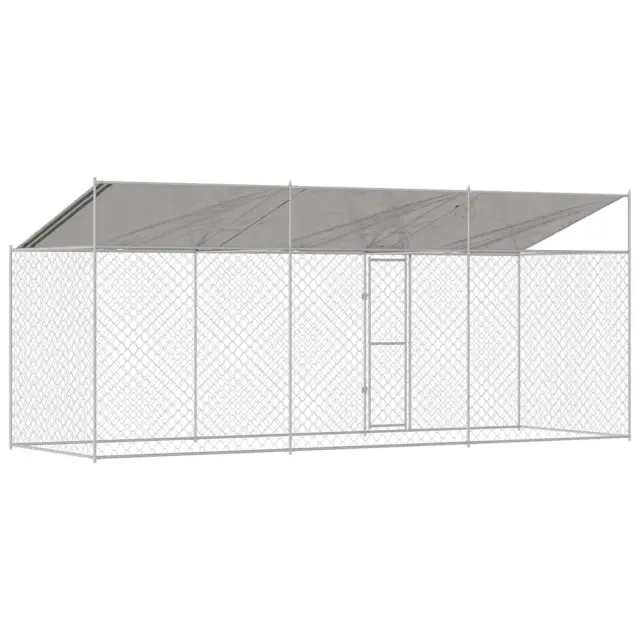 vidaXL Pasja kletka srebrna 600 x 200 x 256 cm Cinkana jeklena
