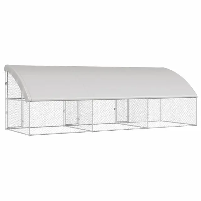 vidaXL Pasja lopa s shranjevanjem 3 pcs srebrna 6 x 2 x 2 m Jeklo