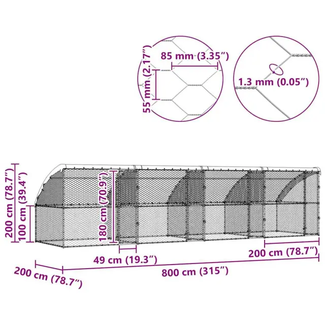 vidaXL Pasja lopa s shranjevanjem 4 pcs srebrna 8 x 2 x 2 m Jeklo