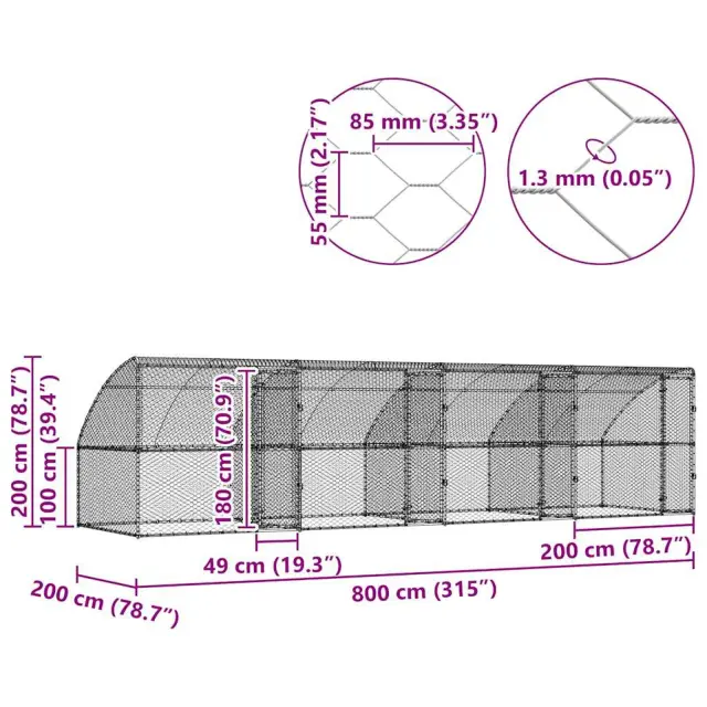 • Trpežno pocinkano jeklo: Delan iz močnega pocinkanega jekla, ta pesjak odporen na vse vremenske razmere. Zasnova z dolgotrajno odpornostjo zmanjšuje obrabo tudi v najtežjih pogojih. Idealen je za tiste, ki cenijo kvalitetno opremo, saj ponuja varno zavetje za hišne ljubljenčke, hkrati pa ima tudi preprost in estetski izgled.