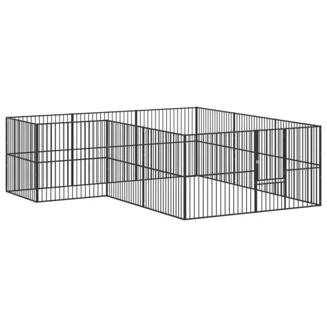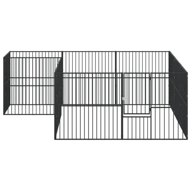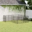 vidaXL Pasja ograda 12 panelov črno pocinkano jeklo