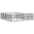 vidaXL Pasja ograda 16 panelov črno pocinkano jeklo