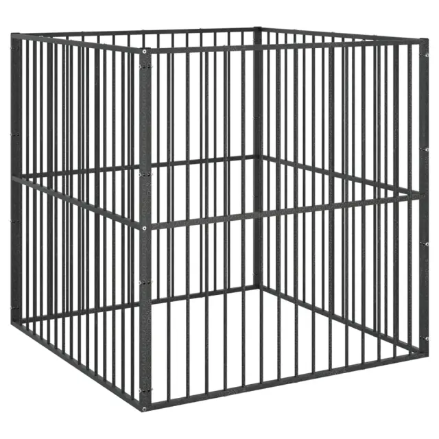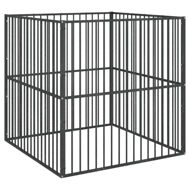 vidaXL Pasja ograda 4 paneli črno pocinkano jeklo
