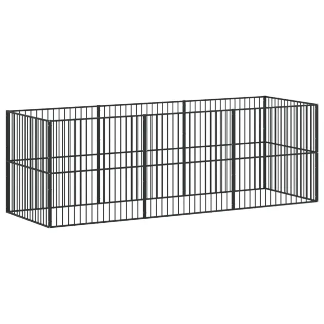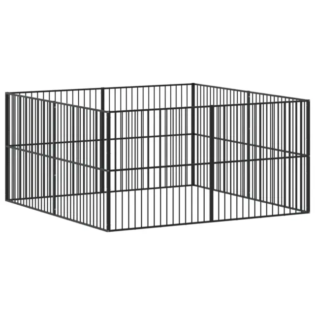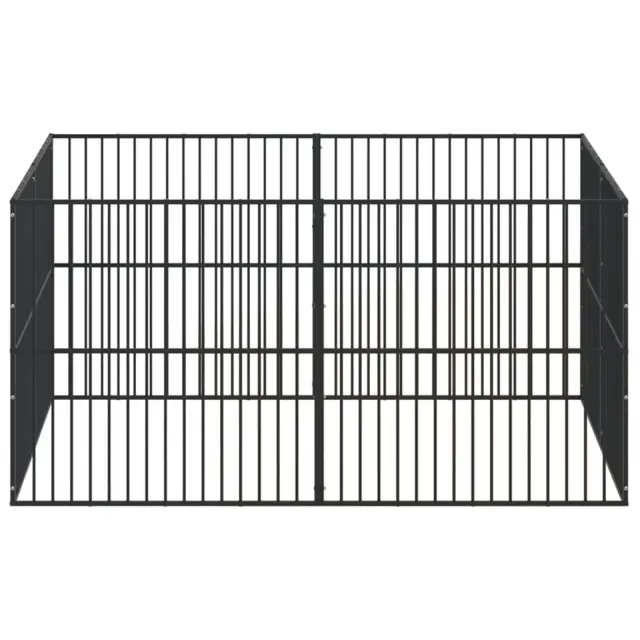vidaXL Pasja ograda 8 panelov črno pocinkano jeklo