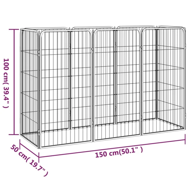vidaXL Pasja ograda z 8 paneli črna 50x100 cm prašno barvano jeklo