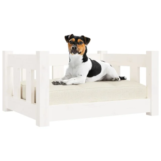 vidaXL Pasja postelja bela 55,5x45,5x28 cm trdna borovina