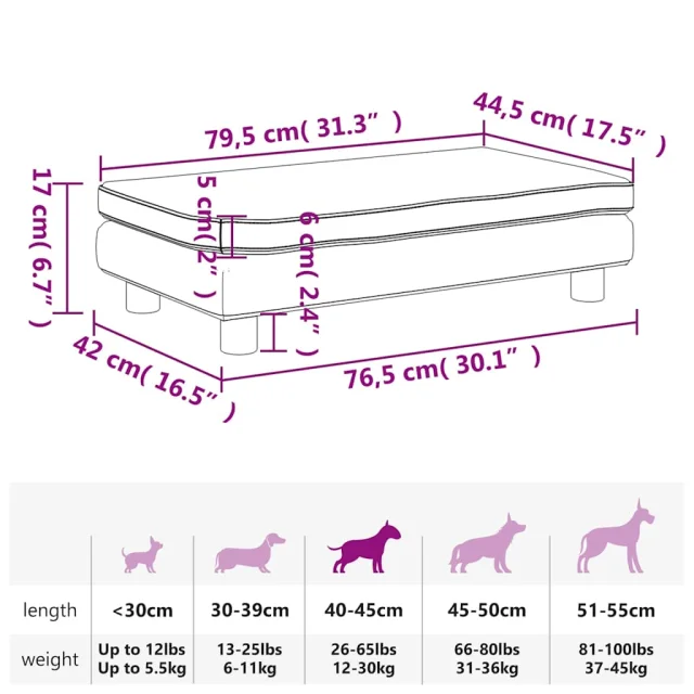 vidaXL Pasja postelja s podaljškom temno siva 100x50x30 cm žamet