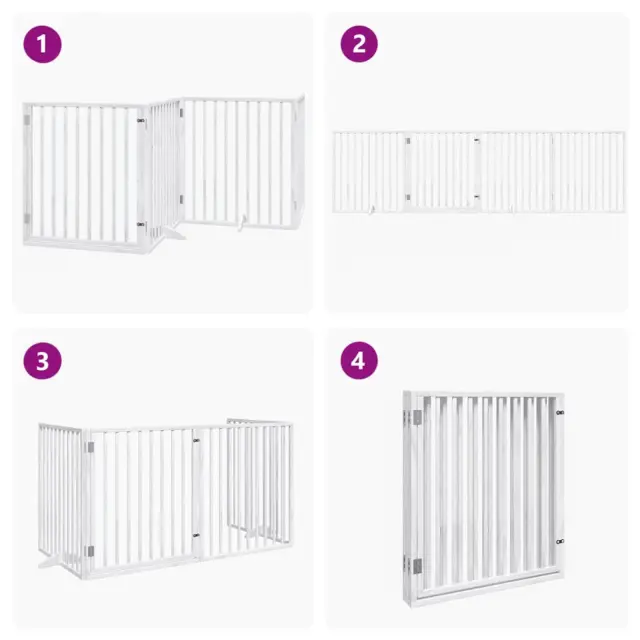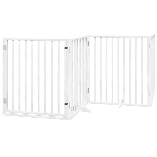 vidaXL Pasja vrata z vrati, zložljiva, 4 panela, bela, 320 cm, topolov les