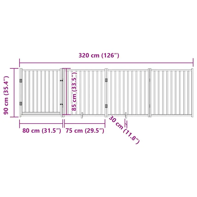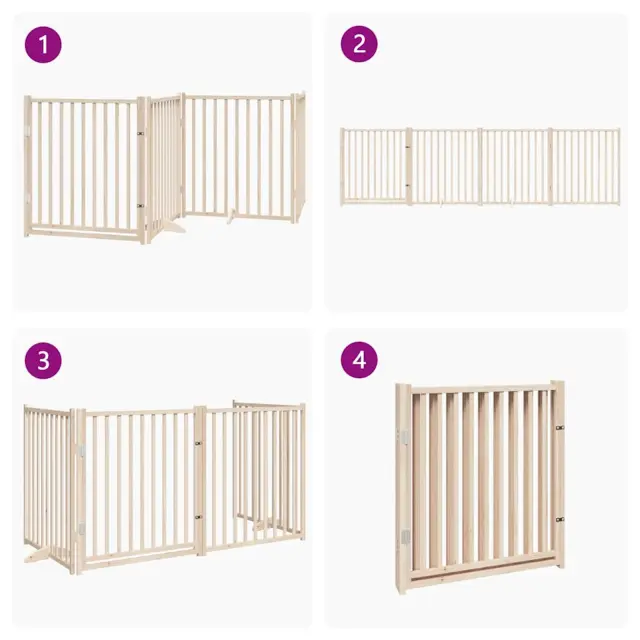 vidaXL Pasja vrata z vrati, zložljiva, 4 panela, 320 cm, masiven les jelka