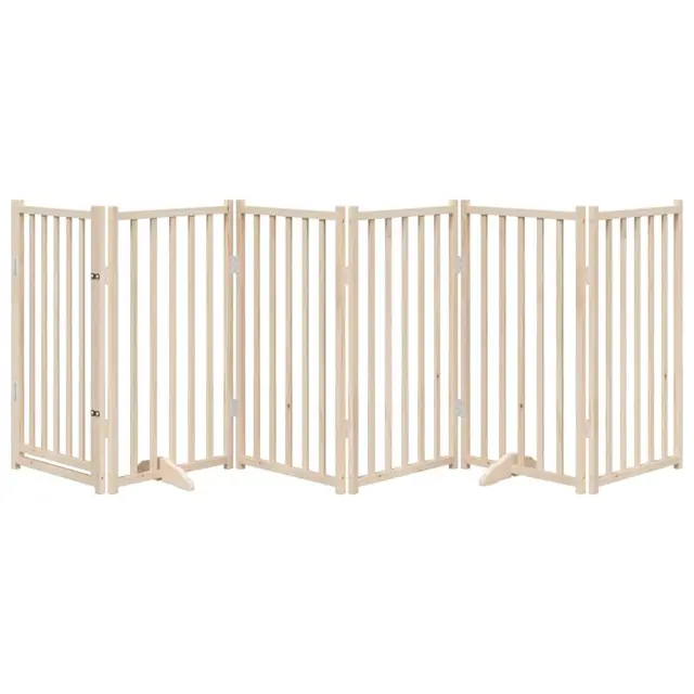 vidaXL Pasja vrata z vrati, zložljiva, 6 panelov, 300 cm, masiven les jelka