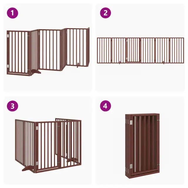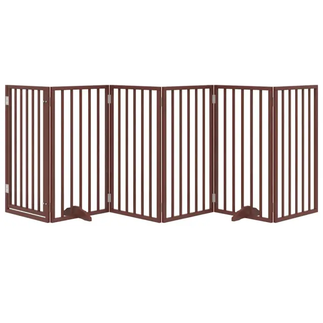 vidaXL Pasja vrata z vrati, zložljiva, 6 panelov, rjava, 300 cm, topolov les