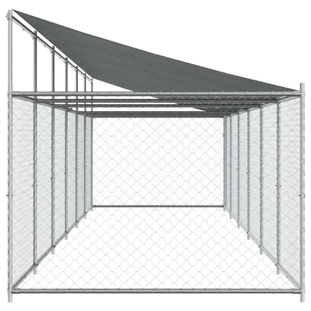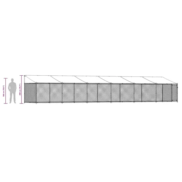 vidaXL Pasji boks s streho in vrati siv 12x2x2m pocinkano jeklo