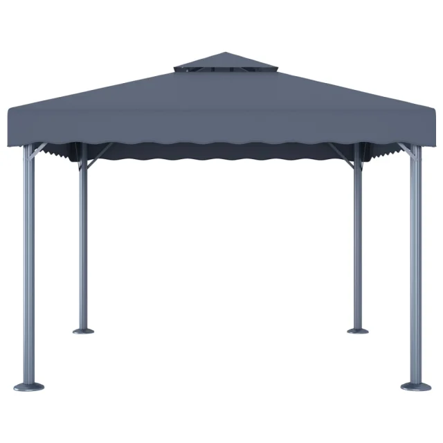 Streha iz oksford blaga s PA oblogo ščiti pred bleščanjem in škodljivimi UV žarki neposredne sončne svetlobe. Ta paviljon je trdno izdelan iz močnega aluminija in jekla, zato je odporen na rjavenje in zelo stabilen. Za preprosto namestitev so priložene tudi kljukice in zanke za pritrditev.