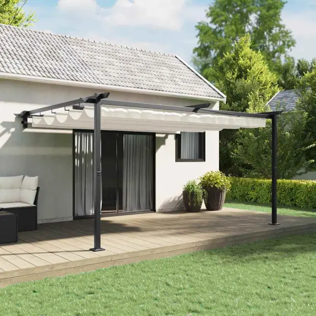 Ta zidni paviljon doda stil vaši zunanji površini, združuje sodoben videz in funkcionalnost. Popoln je za poletne dogodke v vrtu ali na terasi ter nudi eleganten videz. Njegova preprosta in lepa zasnova doda pridih privlačnosti vaši dekoraciji, zato je primeren za vse, od družinskih večerij do zabav na vrtu. Z zložljivo streho paviljon omogoča prilagodljiv dostop do svetlobe ali sence, kar povečuje njegovo vsestranskost na prostem.