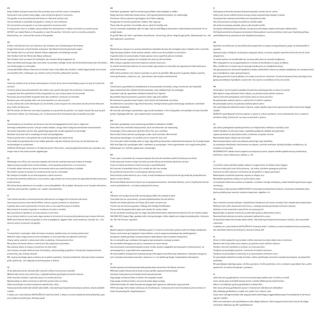 S tem paviljonom lahko svojemu zunanjemu prostoru dodate nujno potrebno senco in zasebnost ter prijetno vzdušje za uživanje. Vrhunski material: Vrtni paviljon je izdelan iz prašno lakiranega jeklenega okvirja. Zato je zelo trden in trpežen. Streha je izdelana iz 100 % poliestra s PA premazom, ki je vodoodporen in lahko blokira najbolj škodljive žarke.Uporabna streha: Streha ponuja senco in zaščito pred direktno sončno svetlobo.Široka uporaba: ta šotor je idealen za vse vrste dogodkov na prostem, kot so poroke, zabave, srečanja itd. Opomba:Ta izdelek se ne sme NIKOLI uporabljati v slabem vremenu, npr. ob močnem vetru, nalivu, snegu, nevihtah itd.Barva: AntracitnaMaterial: Blago (100 % poliester) s PA oblogo, pocinkano jekloVelikost: 3 x 3 m (D x Š)Višina nadstreška: 2 mNajvišja višina: 2,5 mS strehoPotrebno sestavljanje: Da 315247
