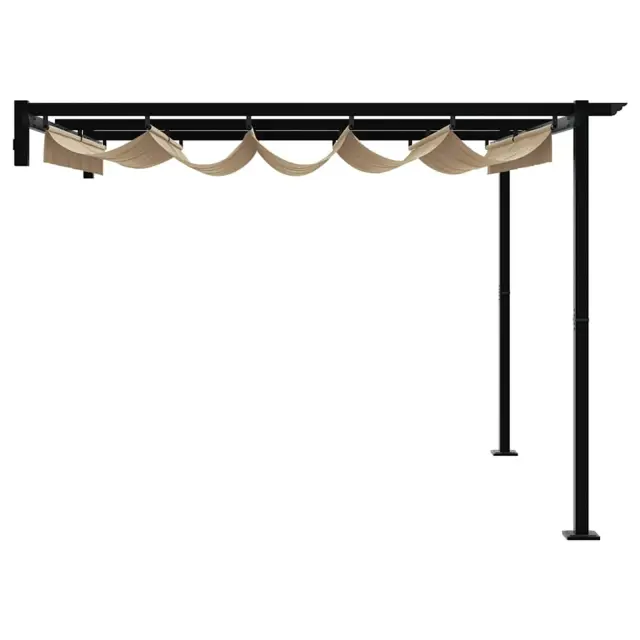 Ta zidni paviljon doda stil vaši zunanji površini, združuje sodoben videz in funkcionalnost. Popoln je za poletne dogodke v vrtu ali na terasi ter nudi eleganten videz. Njegova preprosta in lepa zasnova doda pridih privlačnosti vaši dekoraciji, zato je primeren za vse, od družinskih večerij do zabav na vrtu. Z zložljivo streho paviljon omogoča prilagodljiv dostop do svetlobe ali sence, kar povečuje njegovo vsestranskost na prostem.