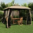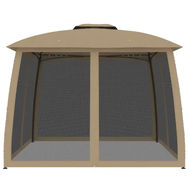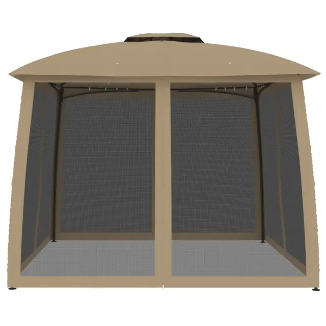 vidaXL Paviljon z dvojno streho, mrežnimi stenami taupe 2,93x2,93 m