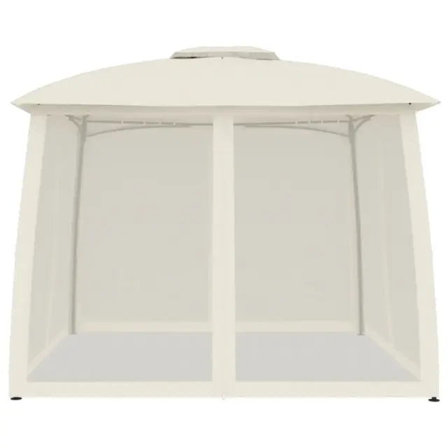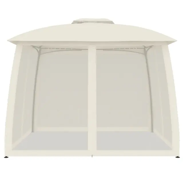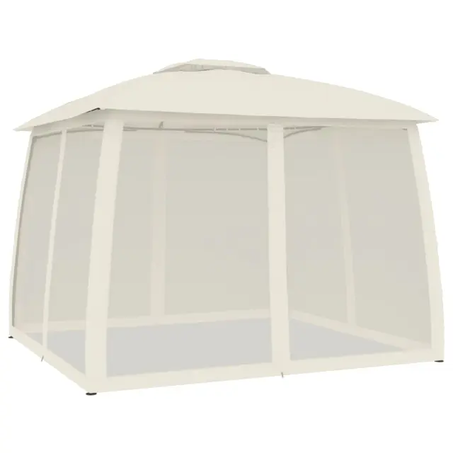 vidaXL Paviljon z dvojno streho, mrežnimi stenami krem 2,93x2,93 m