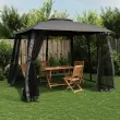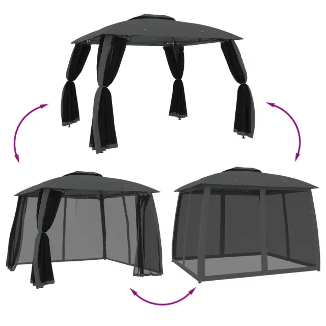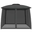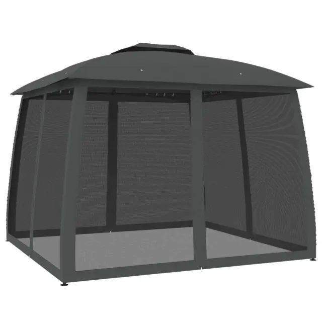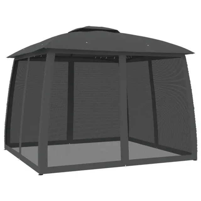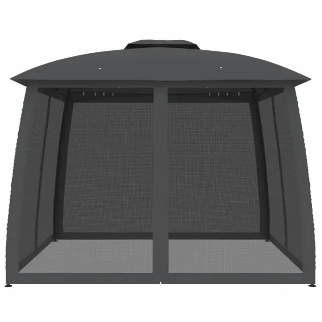 Ustvarite nepozabne trenutke: Zberite se, sprostite se in uživajte v času z družino pod vašim paviljonom! Robusten in trpežen okvir: Okvir je izdelan iz jekla, odpornega na rjo, zato je primeren za dolgotrajno uporabo na prostem. Stabilnost zagotavljajo trdni nosilci, ki podpirajo streho, in ojačana stojala.Veliko prostora: Celoten paviljon je dovolj velik, da sprejme vašo družino in goste. V notranjost lahko dodate tudi jedilne mize.Dvonivojska oblika strehe z zračniki: V sončnih dneh vas ohranja hladne, v slabem vremenu pa krepi odpornost proti vetru.Zaščita pred soncem in dežjem: Poševna streha je izdelana iz trpežnega poliestra s čudovitim dizajnom ostrešja, ki je odporna na vodo in UV-žarke ter ustvarja idealen prostor za dejavnosti na prostem. V primerjavi z ravnimi strehami preprečuje nabiranje deževnice in podaljšuje življenjsko dobo.Stranske stene iz zračne mreže: Mrežaste stene zagotavljajo dobro kroženje zraka, hkrati pa vam omogočajo, da z družino in prijatelji uživate v relativno zasebnem okolju. Dodatno vas lahko učinkovito zaščitijo pred nadležnimi žuželkami in vam zagotovijo udoben prostor za počitek. Z zadrgami lahko preprosto vstopate in izstopate. Dobro je vedeti:Ta izdelek ni primeren za uporabo v slabih vremenskih razmerah, kot so močan veter, močan dež, sneg, nevihte ipd.Barva okvirja: AntracitnaBarva strehe: AntracitnaBarva mrežne stene: ČrnaMaterial okvirja: Jeklo s prašnim premazomMaterial strehe: PoliesterCelotne dimenzije: 2,93 x 2,93 x 2,8 m (D x Š x V)Višina nadstreška: 1,9 mVključujejo 4 mrežaste stene z odprtino z zadrgoVključno z dodatki za montažoPotrebno sestavljanje: Da 368449
