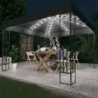 Zračen paviljon bo vaša družinska srečanja, piknike in rojstnodnevne zabave zaščitil pred soncem in dežjem. Paviljon ima močno jekleno konstrukcijo z okrasnimi vzorci in streho iz poliestra. Streho se lahko enostavno namesti na jeklen okvir. Lučke na vrvici ustvarjajo prijetno vzdušje na vašem vrtu, ko zaide sonce. Lučke ne onesnažujejo okolja, saj se podnevi polnijo na solarno energijo.