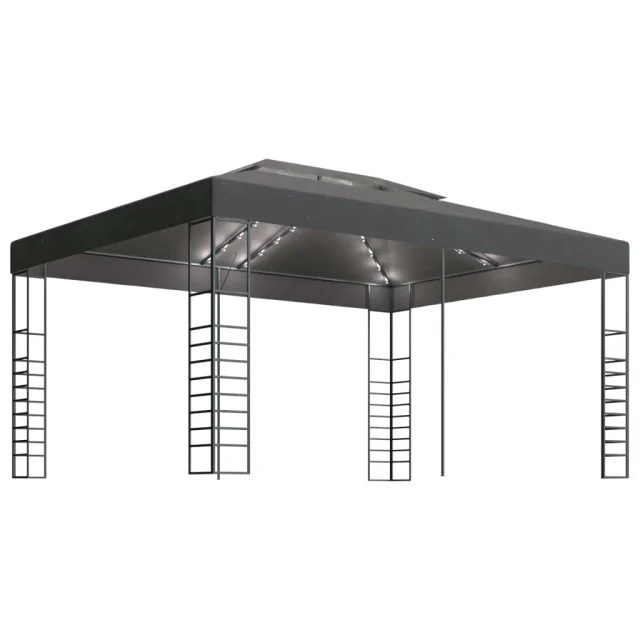 Odprt paviljon bo vaša družinska srečanja, piknike in rojstnodnevne zabave zaščitil pred soncem in dežjem. Šotor ima močno jekleno konstrukcijo z okrasnimi kvadratnimi vzorci in streho iz 100 % poliestra. Izdelek boste zlahka postavili. Lučke na vrvici ustvarjajo prijetno vzdušje na vašem vrtu, ko zaide sonce. Lučke ne onesnažujejo okolja, saj se podnevi polnijo na solarno energijo.