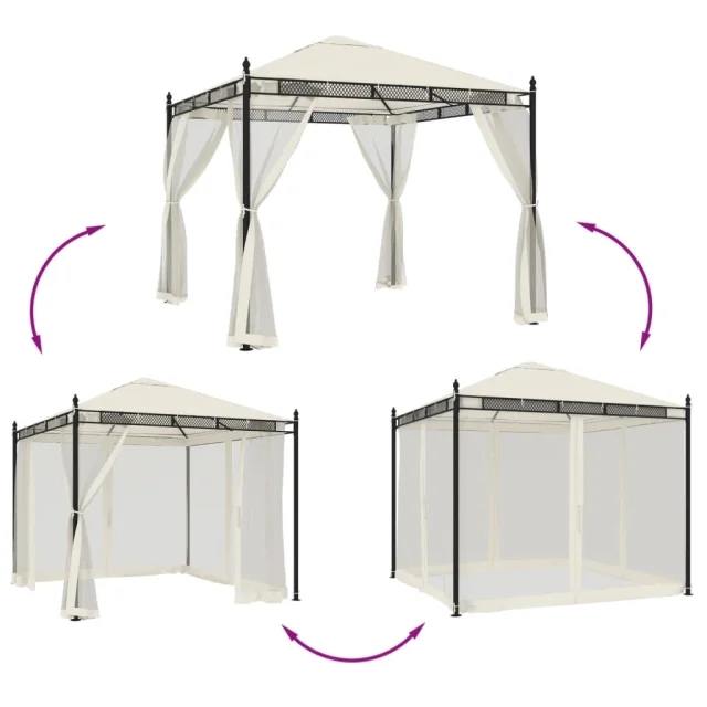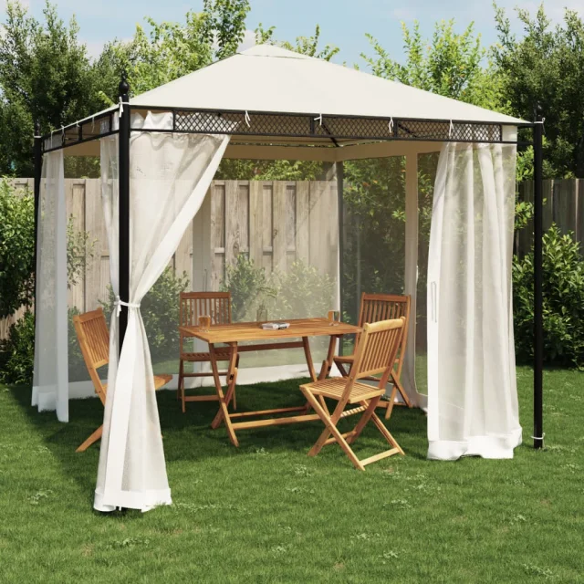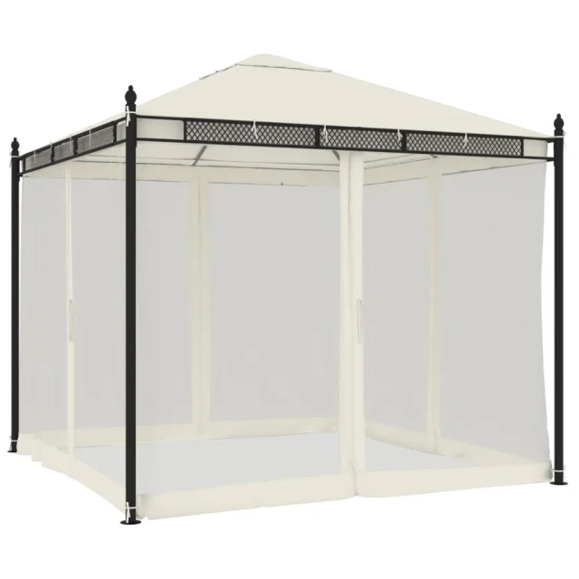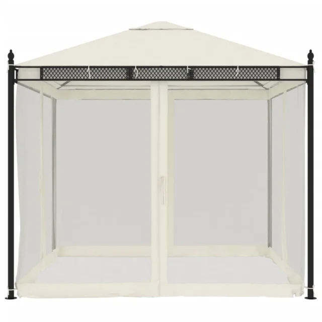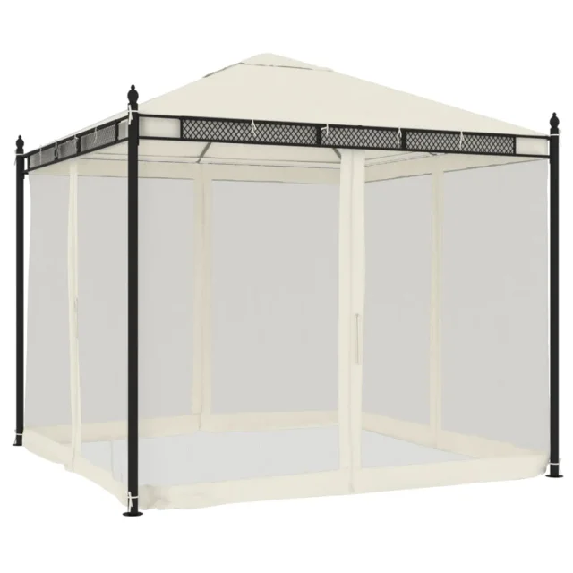 vidaXL Paviljon z mrežastimi stenami krem 2,93x2,93 m jeklo
