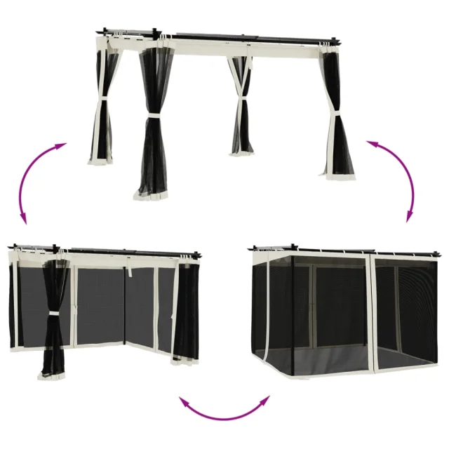 vidaXL Paviljon z mrežastimi stenami krem 3x3 m jeklo