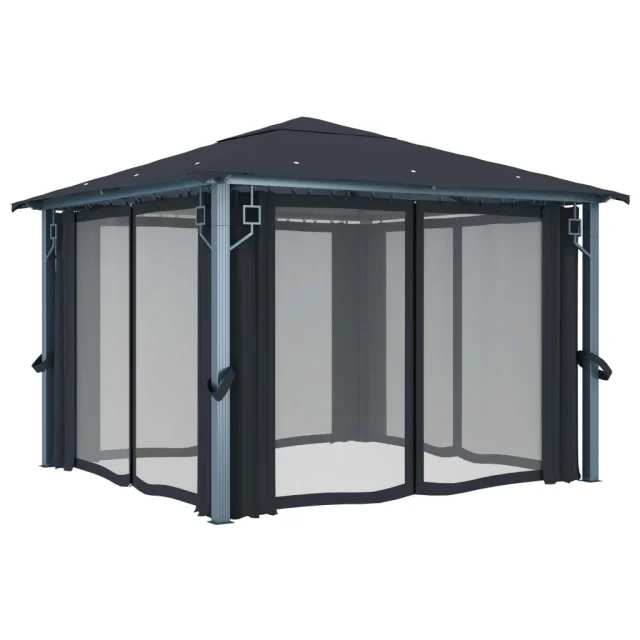 vidaXL Paviljon z zaveso in LED lučkami 3x3 m antraciten aluminij