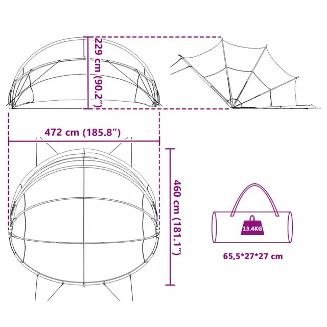 • Celoten komplet: Kupolni šotor vsebuje vse potrebne dodatke, vključno s fleksibilnimi steklenimi palicami, torbo za prenašanje in vrvmi za stabilizacijo. Vse kar potrebujete je vključeno, namestitev je enostavna in zagotavlja varnost v vetrovnih razmerah.