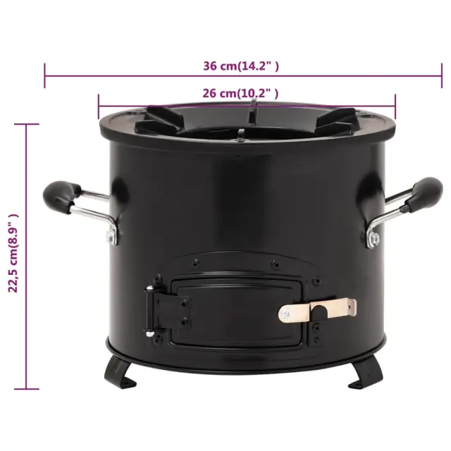 vidaXL Peč na drva za kampiranje črna 36x26x22,5 cm kovina