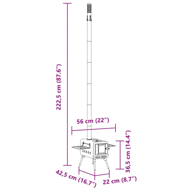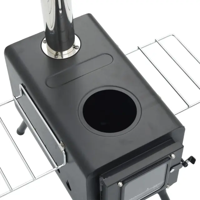 vidaXL Peč za šotor na drva z dimnikom zložljive noge črno jeklo