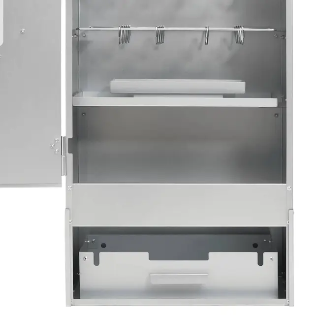 • Veliko prostora za dimljenje: Zunanja peč za dimljenje nudi veliko prostora za prekajevanje mesa, rib, klobas itd. Priloženi kavlji in rešetke v obliki črke S naredijo žar bolj priročen.