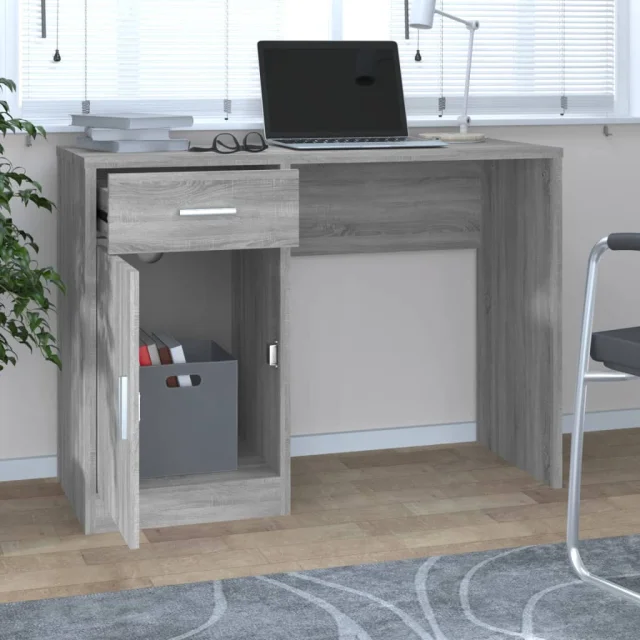 vidaXL Pisalna miza s predalom in omarico siva sonoma 100x40x73 cm les