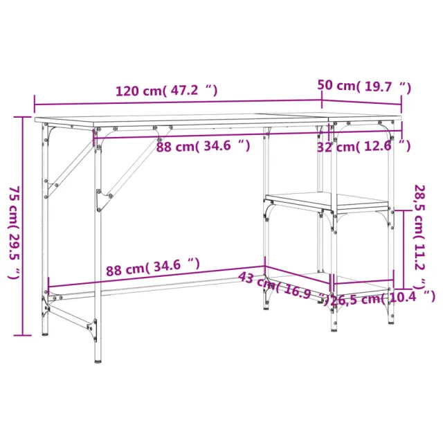 vidaXL Pisalna miza siva sonoma 120x50x75 cm kovina in inženirski les