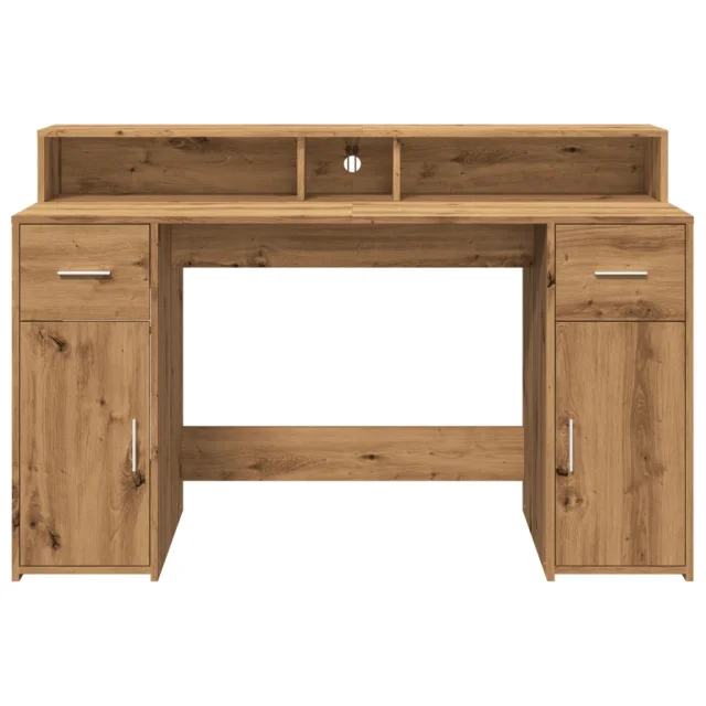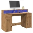 vidaXL Pisalna miza z LED lučkami artisan hrast 140x55x91 cm inž. les