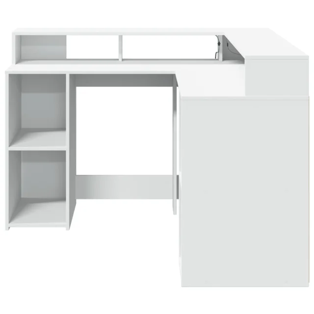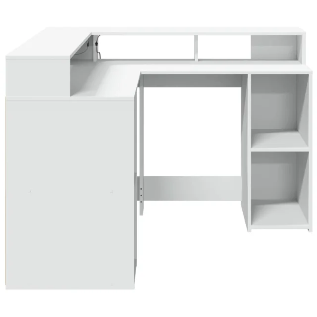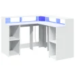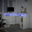 vidaXL Pisalna miza z LED lučkami bela 130x130x91 cm inženirski les