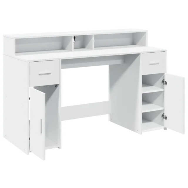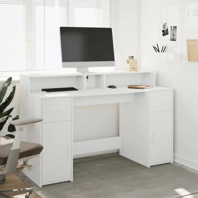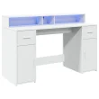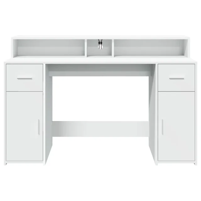 vidaXL Pisalna miza z LED lučkami bela 140x55x91 cm inženirski les