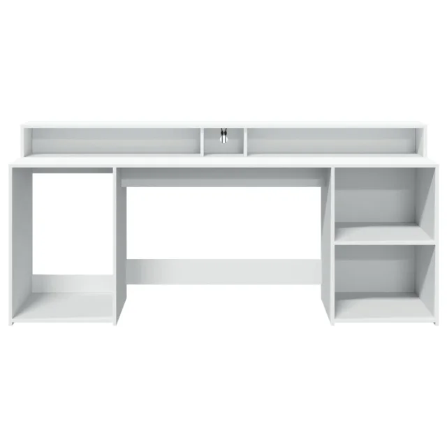 vidaXL Pisalna miza z LED lučkami bela 200x55x91 cm inženirski les