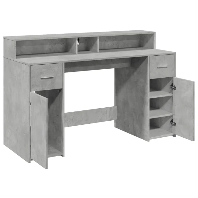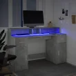 vidaXL Pisalna miza z LED lučkami betonsko siva 140x55x91 cm inž. les
