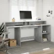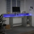vidaXL Pisalna miza z LED lučkami betonsko siva 200x55x91 cm inž. les